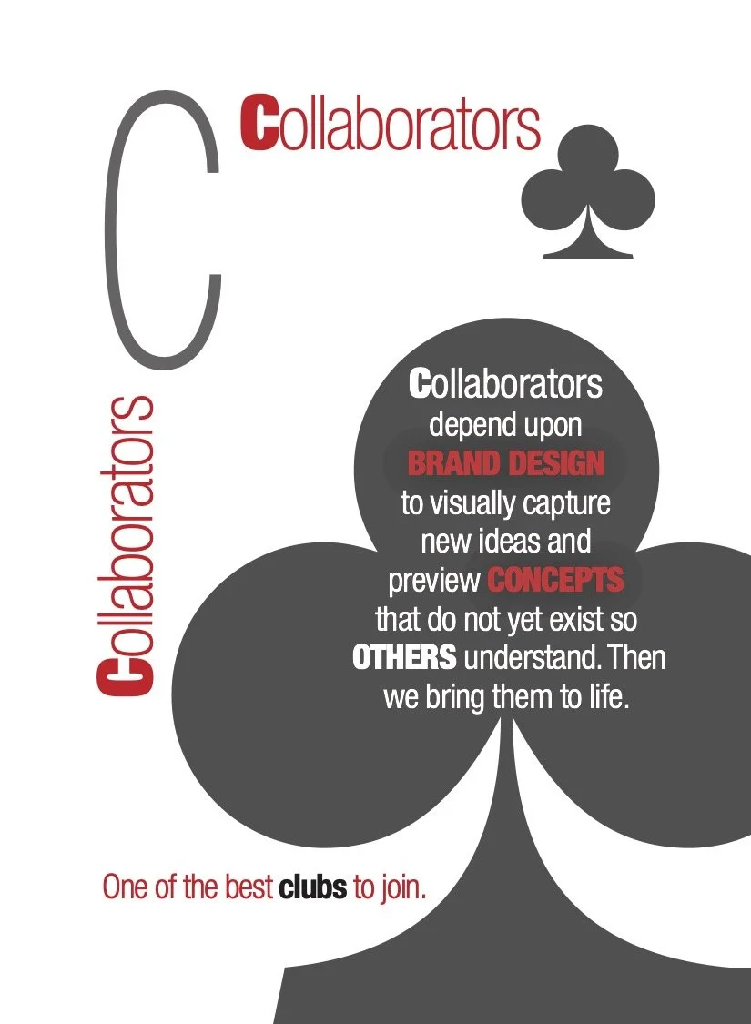 Collaborators depend upon BRAND DESIGN to visually capture new ideas and preview CONCEPTS that do not yet exist so OTHERS understand. Then we bring them to life.