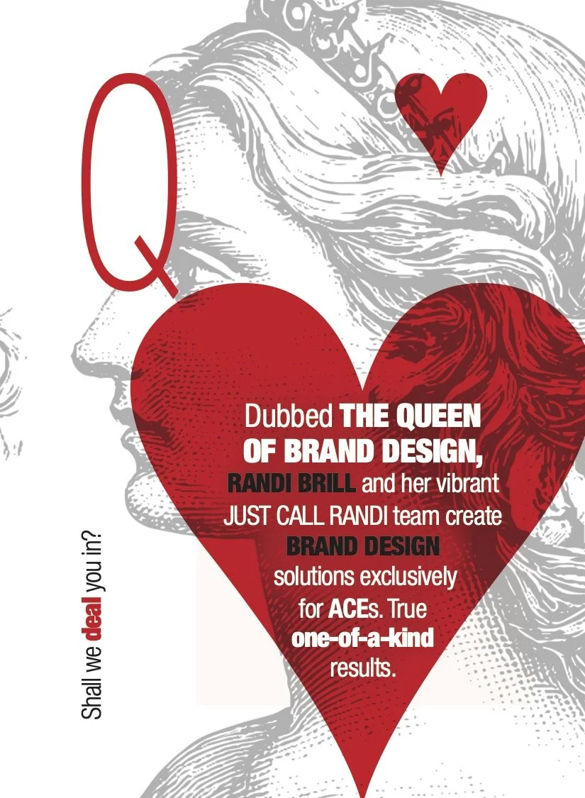 Dubbed THE QUEEN OF BRAND DESIGN, RANDI BRILL and her vibrant JUST CALL RANDI team create BRAND DESIGN solutions exclusively for ACEs. True one-of-a-kind results.