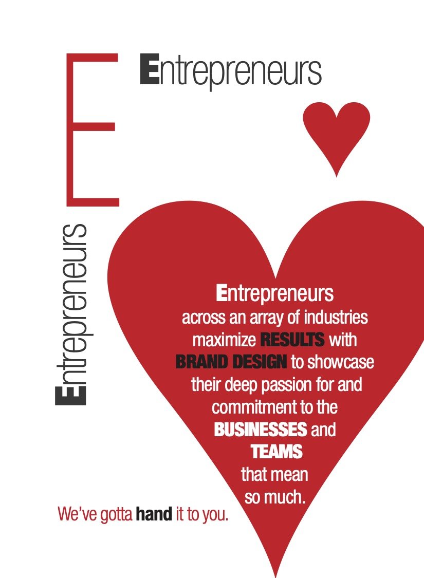 Entrepreneurs across an array of industries maximize RESULTS with BRAND DESIGN to showcase their deep passion for and commitment to the BUSINESS and TEAMS that mean so much.